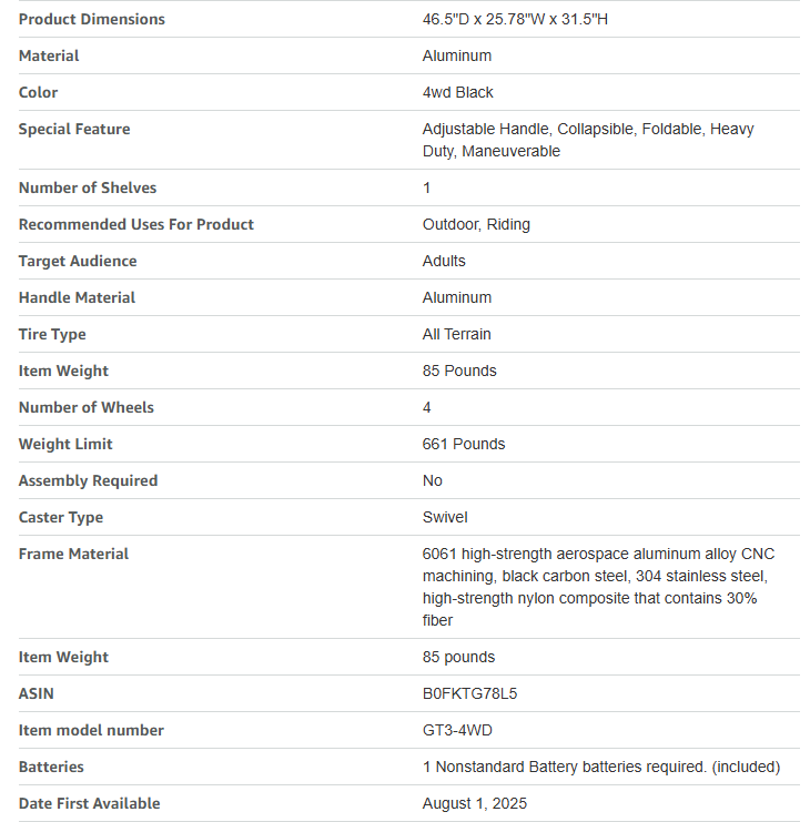 | Color | Black/Default, +Army Green Bag, +Khaki Cargo Bag |